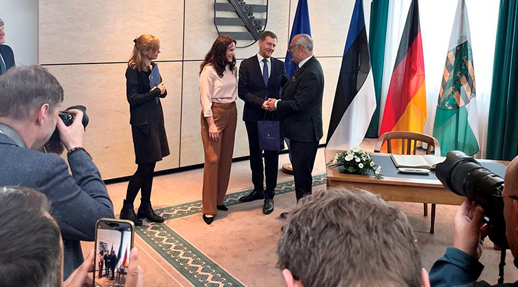 Eine ausländische Botschafterin mitsamt Delegation aus Berlin wird anlässlich ihres Antrittsbesuchs in einem sächsischen Ministerium empfangen.